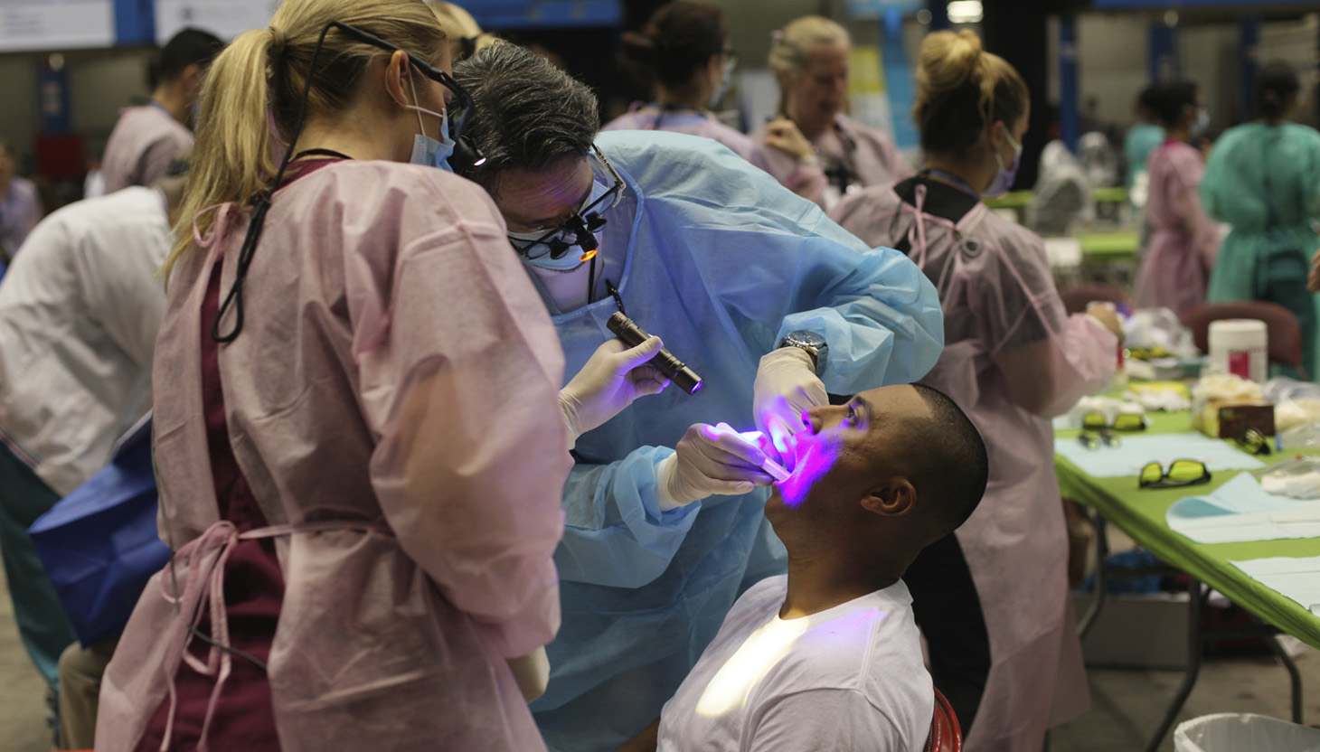 Care Harbor converts arenas and other large venues into working clinics treating thousands of people in the space of a few days. Our events may have 100 dental chairs, 20 vision lanes, 40 primary care and subspecialty exam rooms, a women’s health section, dispensary, and many other resources. We offer everything from dental fillings, extractions and cleanings to eye exams and prescription glasses, from medical evaluations and procedures to immunizations and screenings.